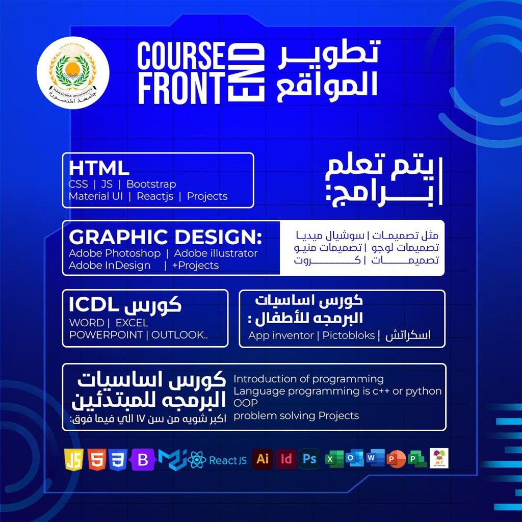 كورس Front-End Development مصمم لمساعدتك على احتراف تصميم وتطوير واجهات المواقع الإلكترونية بطريقة عصرية وتفاعلية. ستتعلم أهم التقنيات والأدوات المستخدمة في بناء مواقع سريعة، متجاوبة، وجذابة بصريًا، مع التركيز على الجانب العملي من خلال مشاريع حقيقية.